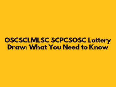 OSCSCLMLSC SCPCSOSC Lottery Draw: What You Need To Know