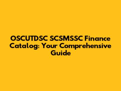 OSCUTDSC SCSMSSC Finance Catalog: Your Guide