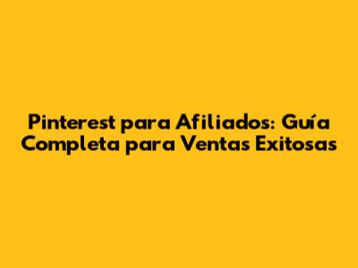 Pinterest Para Afiliados: Guía Completa Para Ventas Exitosas