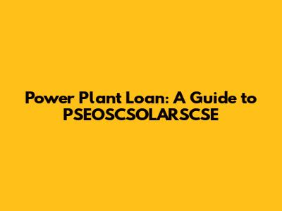 Power Plant Loan: A Guide To PSEOSCSOLARSCSE