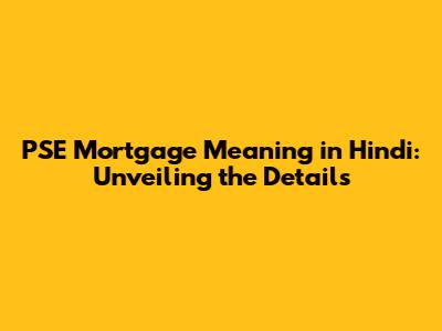 PSE Mortgage Meaning: A Deep Dive Into Hindi