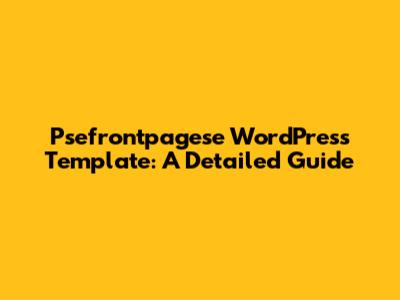 Psefrontpagese WordPress Template: A Detailed Guide