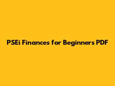 PSEi Finances: Beginner's Guide PDF