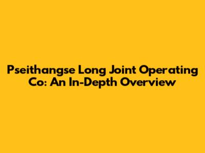 Pseithangse Long Joint Operating Co: An In-Depth Overview