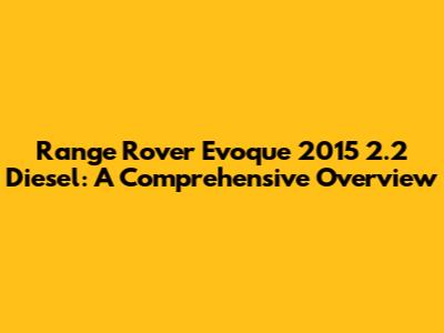 Hey guys, let's dive into the Range Rover Evoque 2015 2.2 Diesel! This compact SUV made quite a splash when it hit the scene, and for good reason. It's got that sleek, stylish Range Rover DNA, but in a more manageable package. This article will be your go-to guide, covering everything from the engine and performance to common issues and what you can do about them. Get ready to become an Evoque 2.2 Diesel expert!