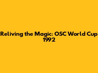Reliving The Magic: OSC World Cup 1992