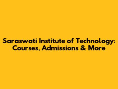 Saraswati Institute Of Technology: Courses, Admissions & More
