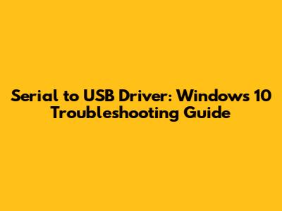 Serial To USB Driver: Windows 10 Troubleshooting Guide