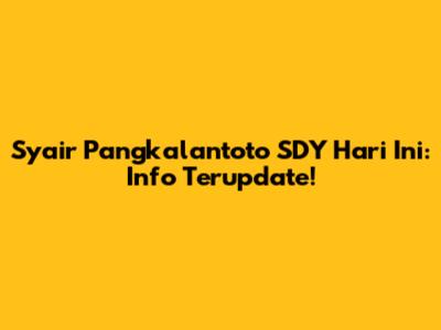 Syair Pangkalantoto SDY Hari Ini: Info Terupdate!