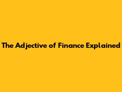 The Adjective Of Finance Explained