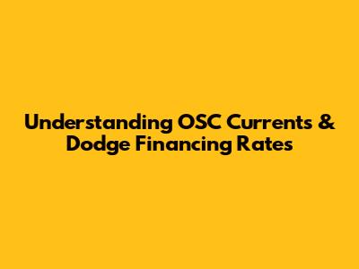 Understanding OSC Currents & Dodge Financing Rates