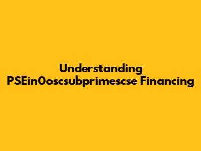 Understanding PSEin0oscsubprimescse Financing