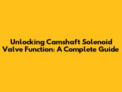 Unlocking Camshaft Solenoid Valve Function: A Complete Guide