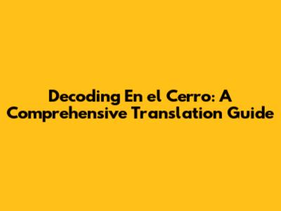 Unlocking 'En El Cerro': Your Guide To Spanish Translation