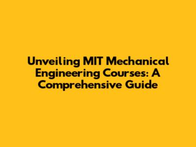 Unveiling MIT Mechanical Engineering Courses: A Comprehensive Guide