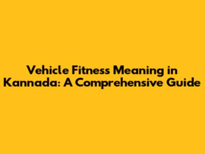 Vehicle Fitness Meaning In Kannada: A Comprehensive Guide